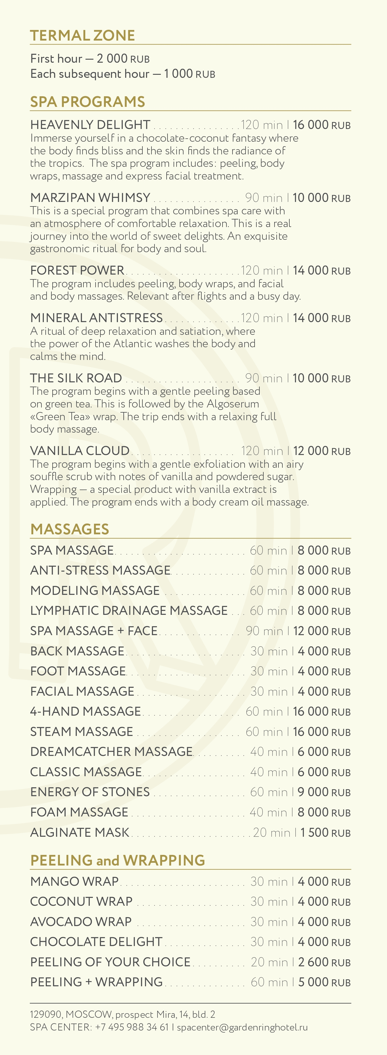 МЕНЮ СПА ЦЕНТРА/MENU SPA