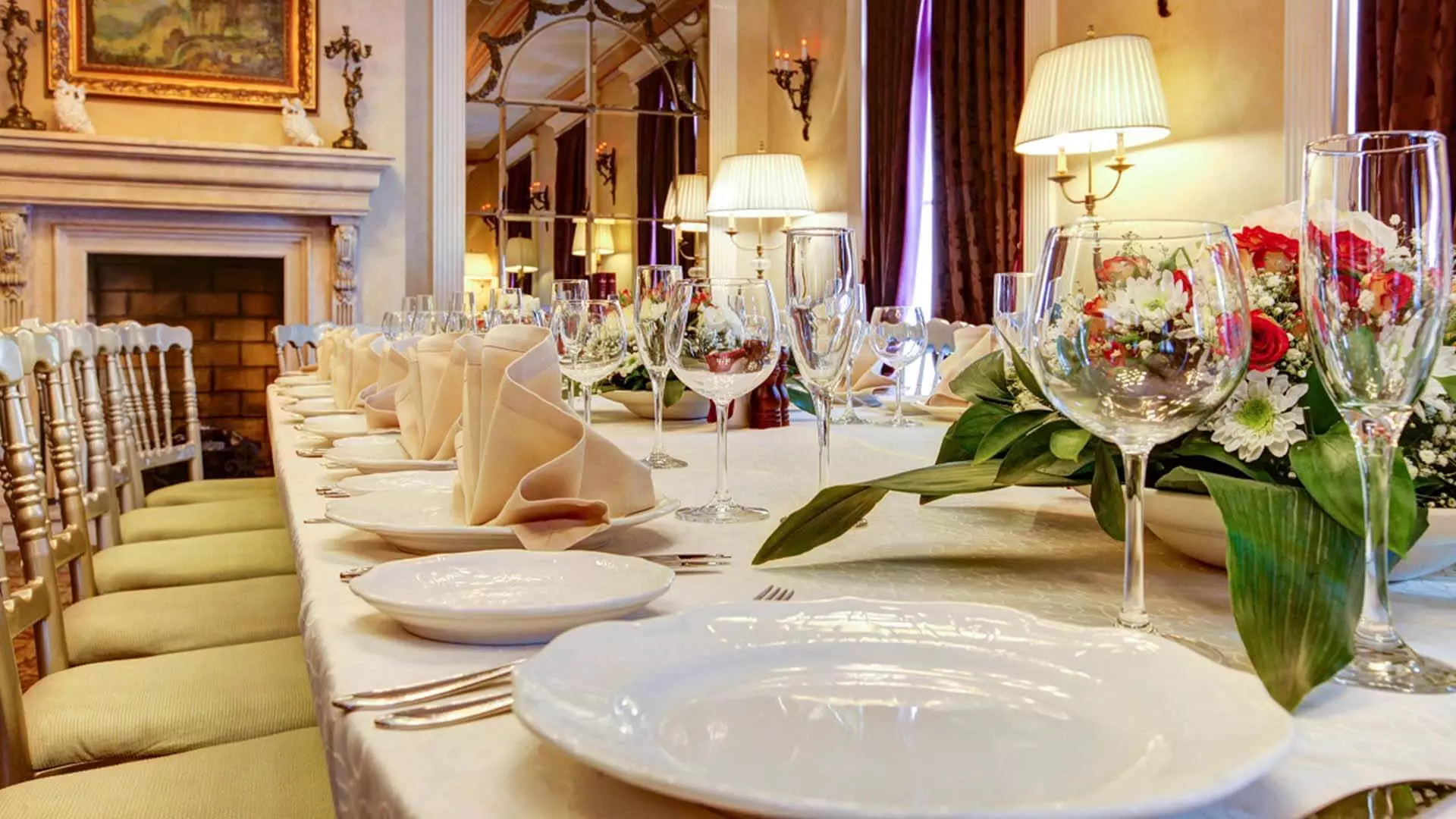 The exquisite Fireplace Hall is also perfect for small negotiations, business lunches, or dinners with presentations.